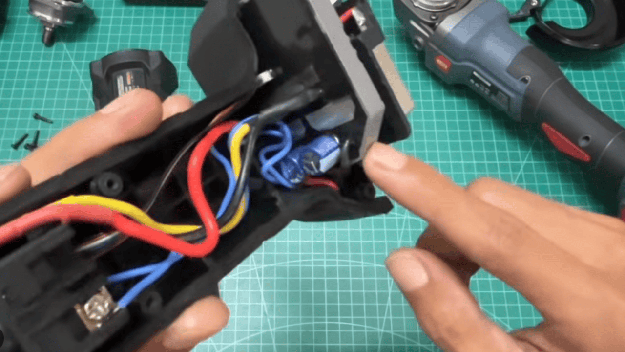 Máy rất nhạy với va chạm và nghiêng đột ngột — tính năng này có thể cứu nguy trong trường hợp đá mài văng hoặc máy bị quật mạnh.